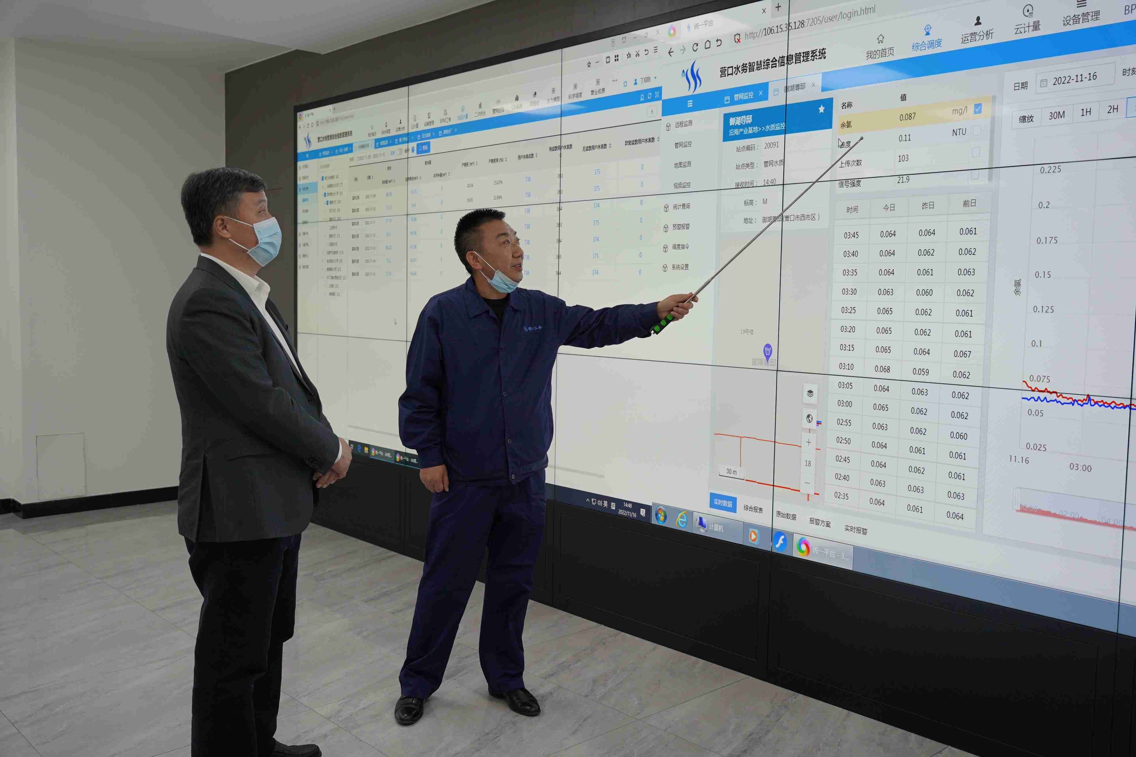 姚華明對智慧水務(wù)平臺的建設(shè)給予充分肯定,并詳細詢問了水源水廠、日供水能力、供水應(yīng)急保障及企業(yè)經(jīng)營情況,他指出,水務(wù)集團基礎(chǔ)好、底子硬,在智慧水務(wù)的創(chuàng)新及研發(fā)方面始終不遺余力,智慧水務(wù)系統(tǒng)將對未來供水管網(wǎng)系統(tǒng)大數(shù)據(jù)分析及管網(wǎng)現(xiàn)代化管理提供更精準(zhǔn)的信息,為企業(yè)精細化管理提供參考依據(jù),相信水務(wù)集團將為城市發(fā)展提供強大供水支撐。同時對今后工作提出三點要求:一要全力做好供水安全保障工作,確保水量足、水壓穩(wěn)、水質(zhì)優(yōu);二要全面提升服務(wù)效能,創(chuàng)新服務(wù)舉措,優(yōu)化服務(wù)方式,打造專業(yè)服務(wù)隊伍,不斷提升市民滿意度;三要全力推動數(shù)字化發(fā)展,加快智慧水務(wù)平臺建設(shè)進程,真正用數(shù)字服務(wù)民生,全面打造現(xiàn)代化國有企業(yè)。