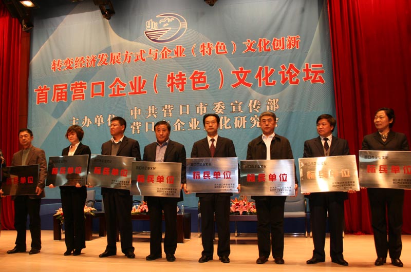 11月10日,我公司被命名為“營(yíng)口市企業(yè)文化十佳標(biāo)兵單位”,在“營(yíng)口市首屆企業(yè)文化論壇”上受到表彰,郭智敏總經(jīng)理代表我公司介紹了企業(yè)文化建設(shè)的經(jīng)驗(yàn)和體會(huì)。
