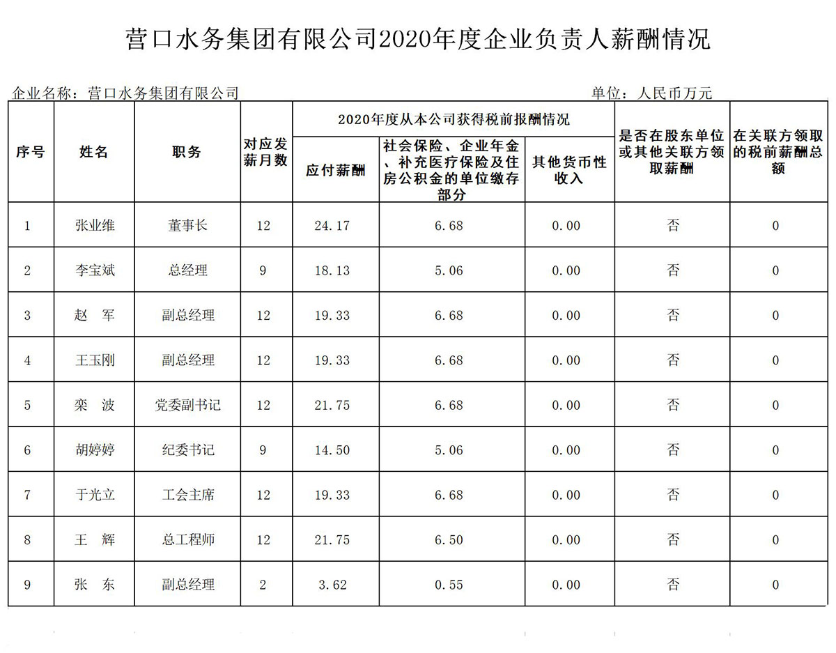 2020年度營(yíng)口市市屬企業(yè)負(fù)責(zé)人薪酬信息公開(kāi)表